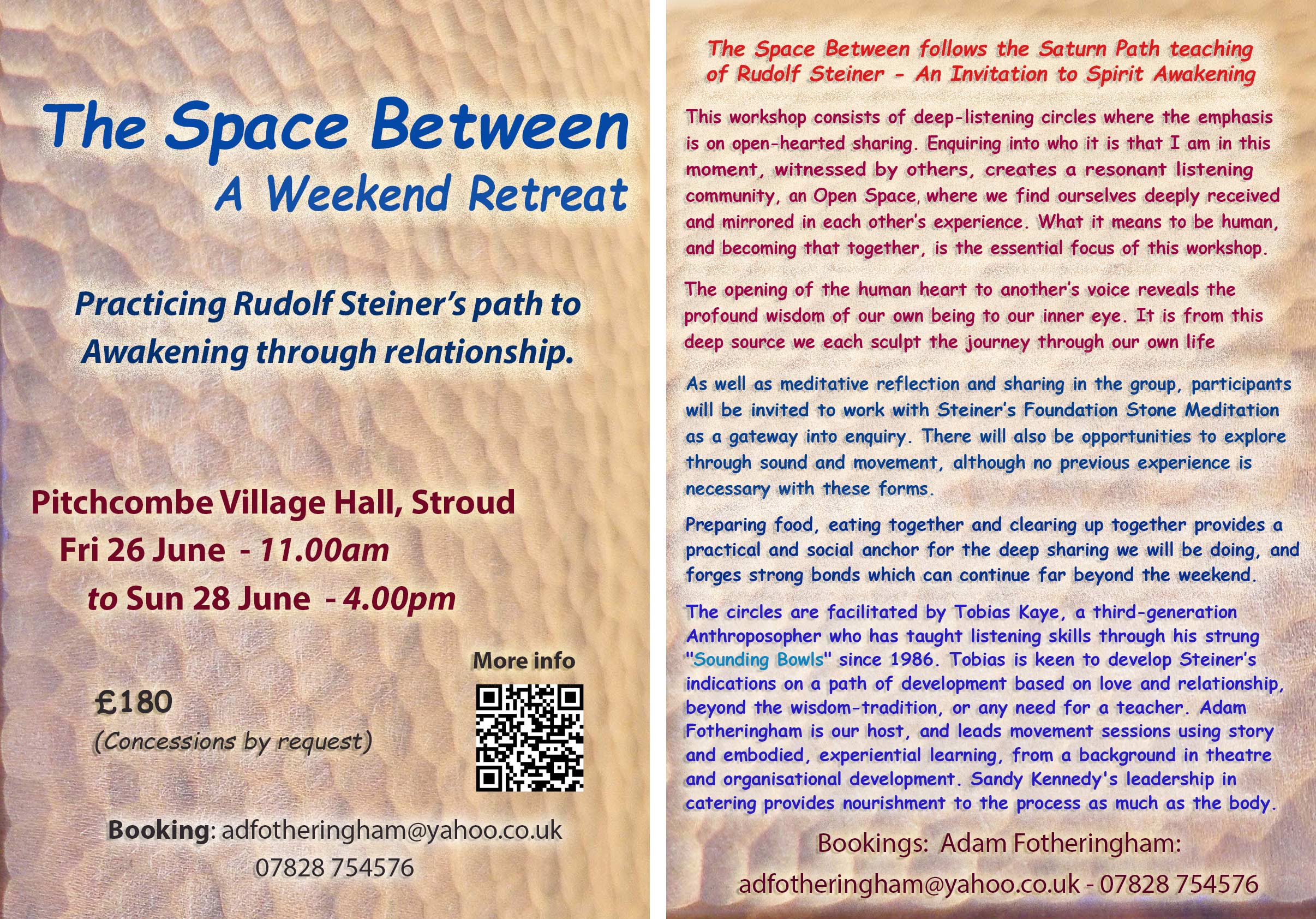 Cost: £180 – concessions according to need, on application.